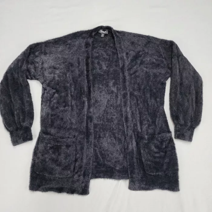 Express Women's L Black Fuzzy Eyelash Knit Open Front Cardigan Sweater Pockets